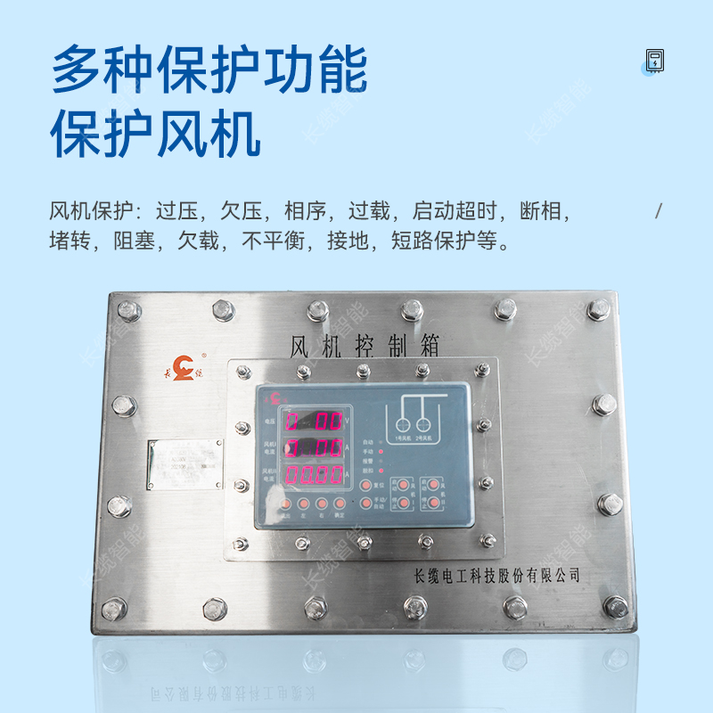 Ø 风机保护:过压,欠压, 相序, 过载, 启动超时,断相,堵转, 阻塞,欠载,不平衡,接地,短路保护等。