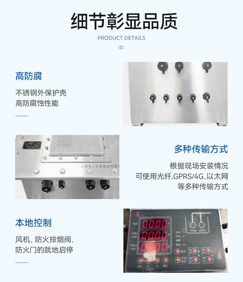 排风综合监控子系统可对产品实现对电缆隧道内的火灾发生情况、风机电压、风机电流等的实时监控,定时启/停风机。并可设定自动运行或本地手动控制,具备风机保护功能, 防止电缆隧道内因起火造成事故。